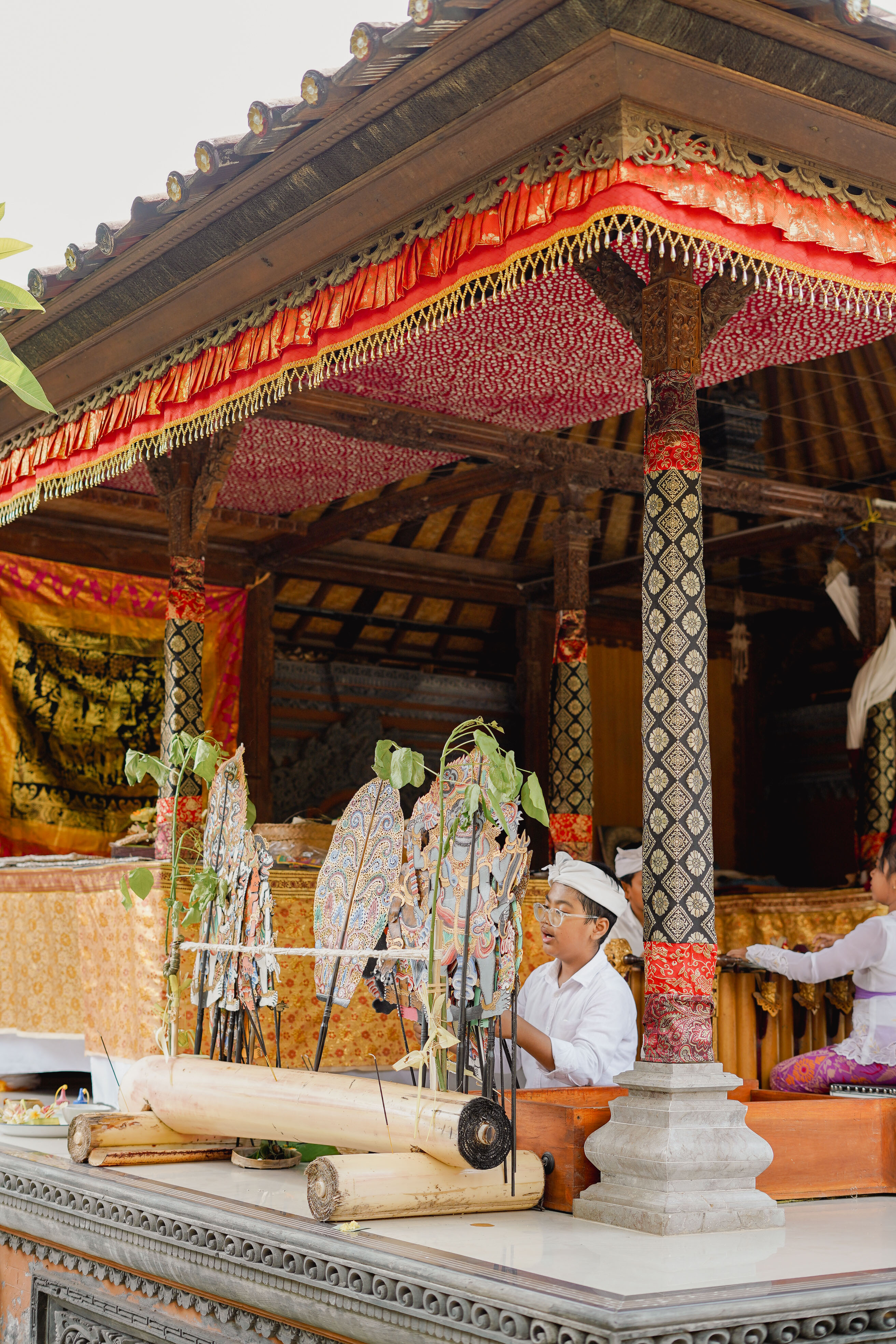 1 Puppet Master, 2 Gamelan Players and 1 Assistant Puppet Master